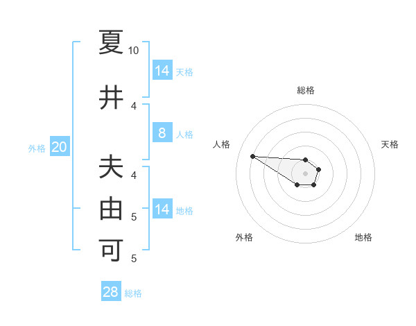 夏井 夫由可さんを姓名の画数から五運を鑑定