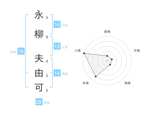 永柳 夫由可さんの外格は15画の4点!