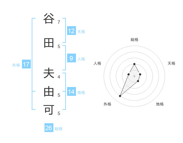 谷田 夫由可さんを姓名の画数から五運を鑑定