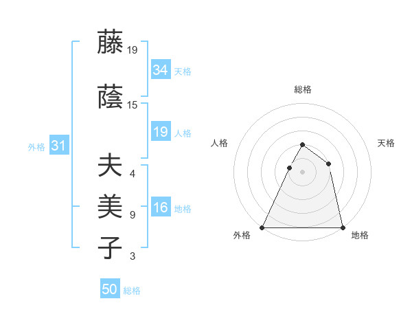 藤蔭 夫美子さんを姓名の画数から五運を鑑定