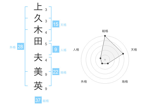 上久木田 夫美英さんを姓名の画数から五運を鑑定