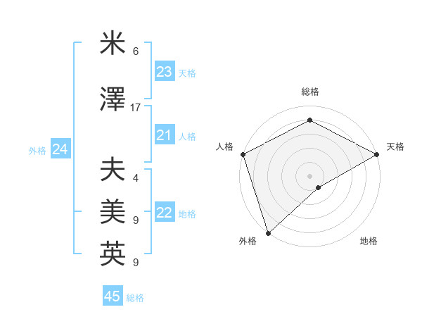 米澤 夫美英さんを姓名の画数から五運を鑑定