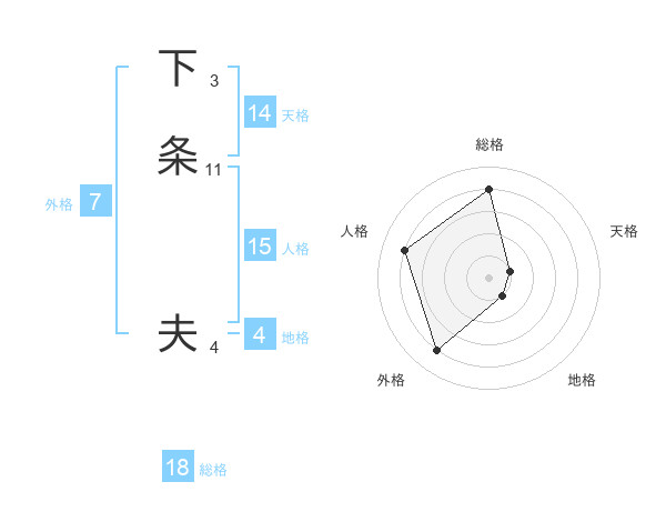 下条 夫さんの総格は18画の4点!