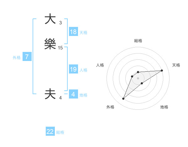 大樂 夫さんの天格は18画の4点!