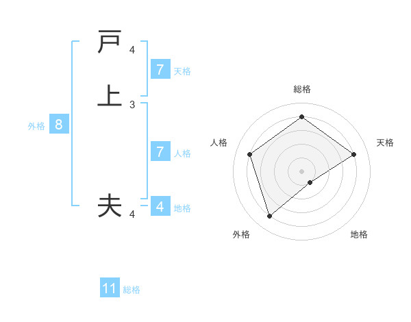 戸上 夫さんの総格は11画の4点!