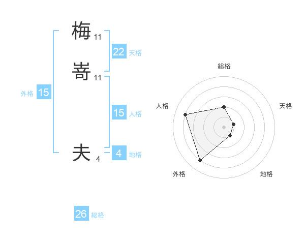 梅嵜 夫さんの天格は22画の1点!