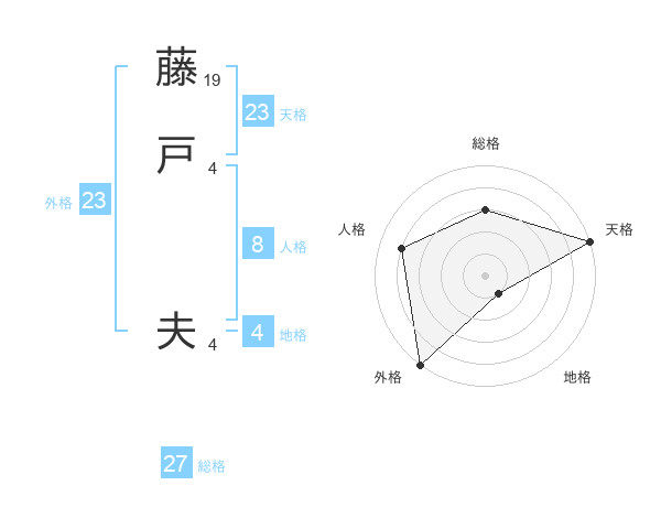 藤戸 夫さんの外格は23画の5点!