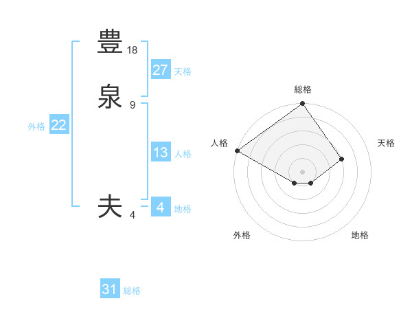 豊泉 夫さんの総格は31画の5点!