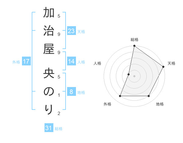 加治屋 央のりさんの天格は23画の5点