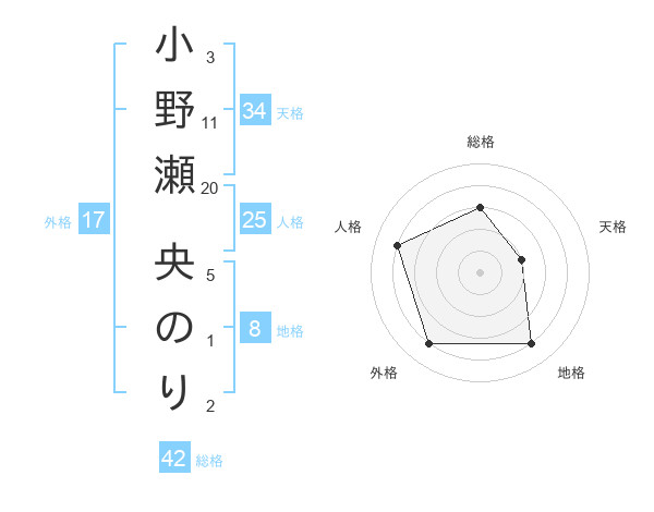 小野瀬 央のりさんの総格は42画の3点