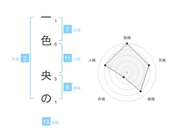 一色 央のさんの総格は13画の5点!