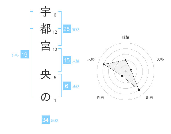 宇都宮 央のさんを姓名の画数から五運を鑑定
