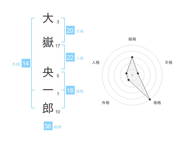 大嶽 央一郎さんを姓名の画数から五運を鑑定