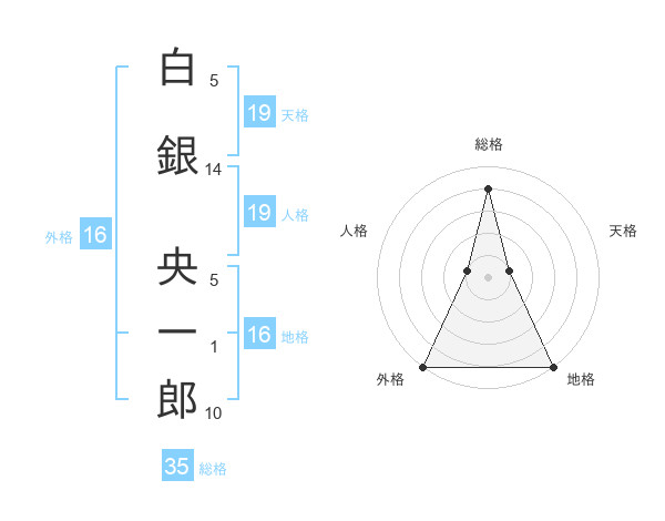 白銀 央一郎さんを姓名の画数から五運を鑑定
