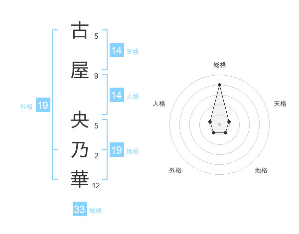 古屋 央乃華さんを姓名の画数から五運を鑑定
