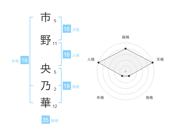 市野 央乃華さんを姓名の画数から五運を鑑定