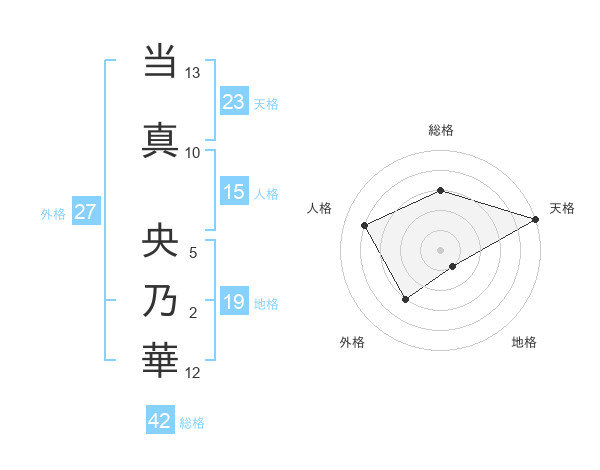 当真 央乃華さんを姓名の画数から五運を鑑定