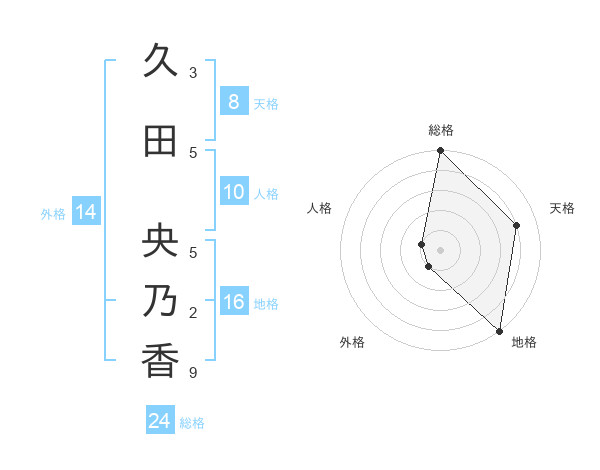久田 央乃香さんの総格は24画の5点