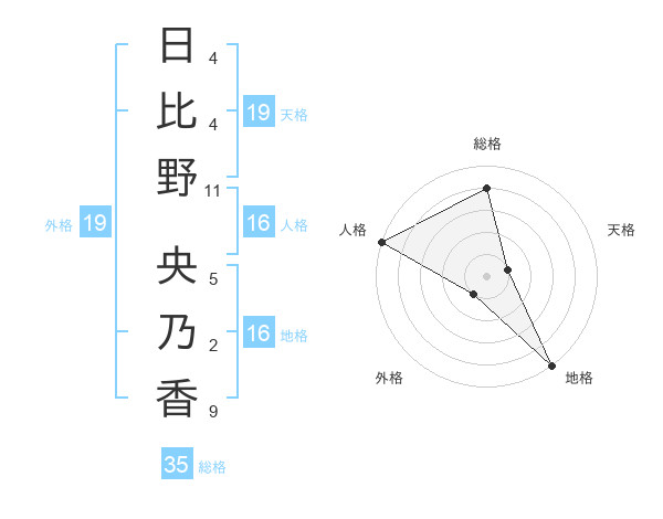 日比野 央乃香さんを姓名の画数から五運を鑑定