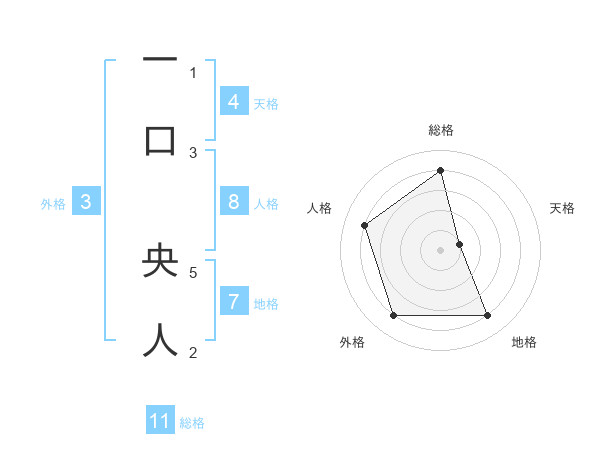 一口 央人さんの総格は11画の4点!