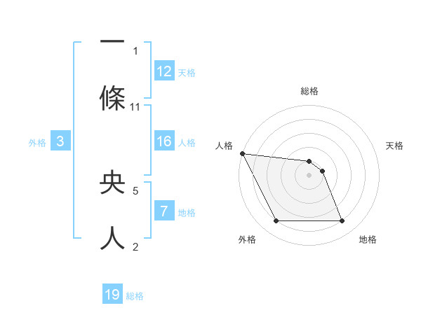 一條 央人さんの天格は12画の1点!