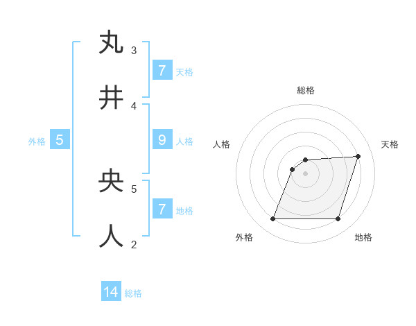 丸井 央人さんの総格は14画の1点!