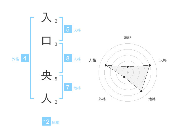 入口 央人さんの総格は12画の1点!