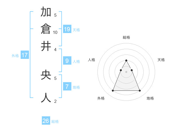 加倉井 央人さんの総格は26画の2点!