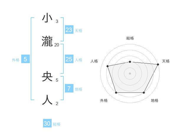 小瀧 央人さんを姓名の画数から五運を鑑定