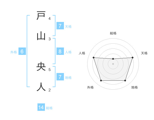 戸山 央人さんの総格は14画の1点!