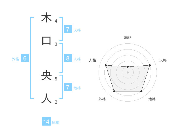 木口 央人さんの地格は7画の4点!