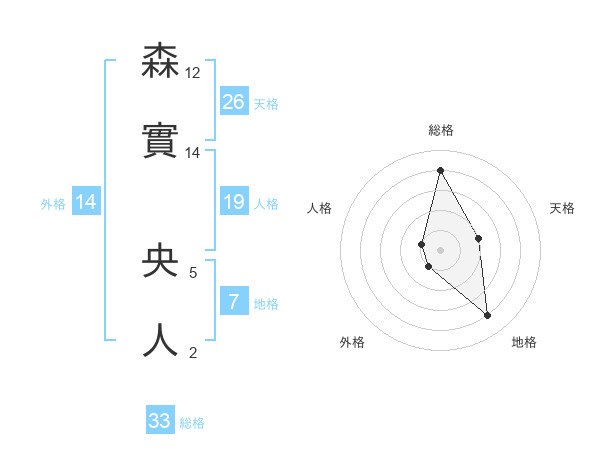 森實 央人さんの総格は33画の4点!