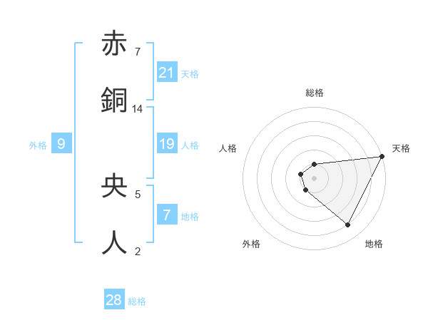 赤銅 央人さんを姓名の画数から五運を鑑定