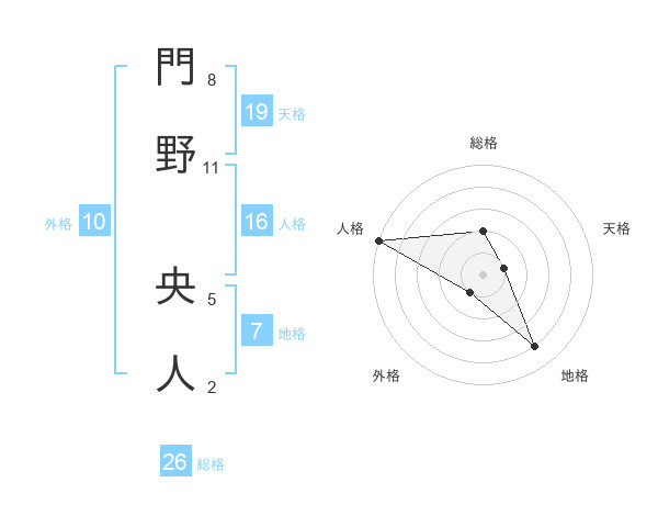 門野 央人さんの総格は26画の2点!