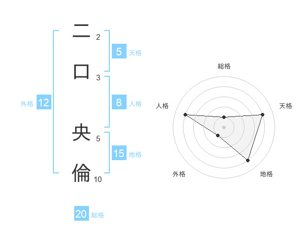 二口 央倫さんの総格は20画の1点!