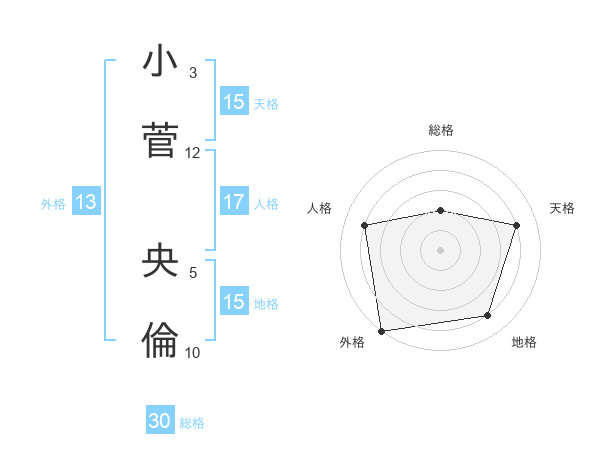 小菅 央倫さんの総格は30画の2点!