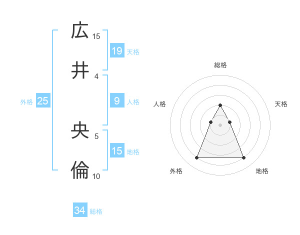 広井 央倫さんの総格は34画の2点!