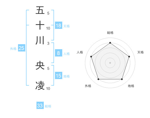 五十川 央凌さんを姓名の画数から五運を鑑定