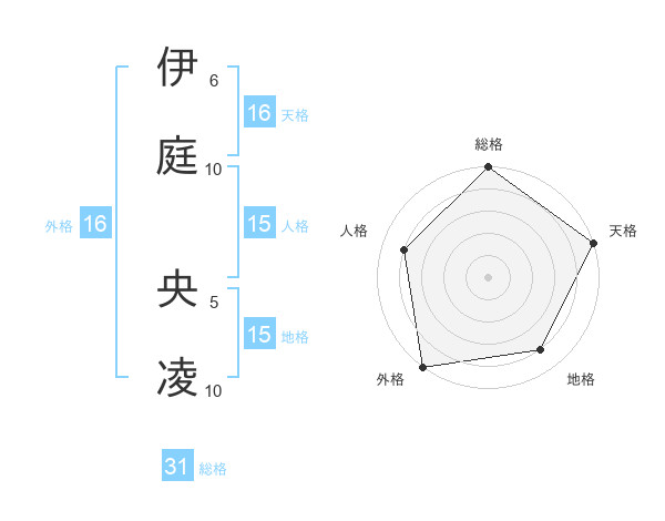 伊庭 央凌さんを姓名の画数から五運を鑑定