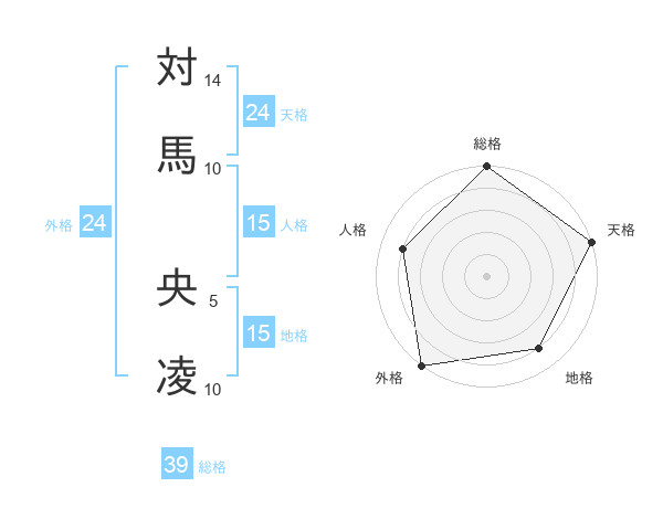 対馬 央凌さんの総格は39画の5点!