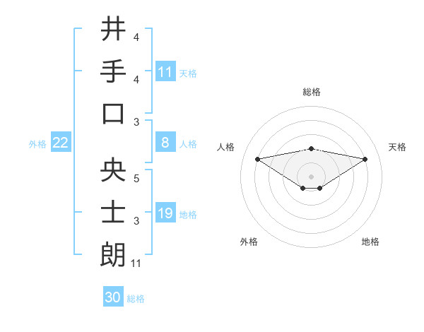井手口 央士朗さんの総格は30画の2点!