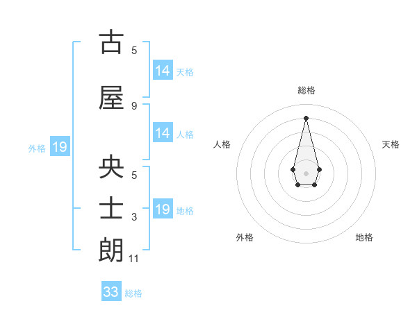 古屋 央士朗さんの総格は33画の4点!