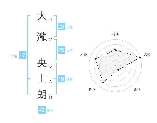 大瀧 央士朗さんを姓名の画数から五運を鑑定