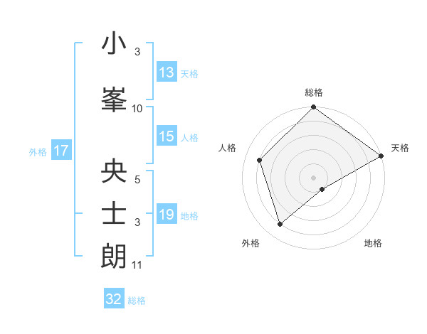 小峯 央士朗さんの総格は32画の5点!