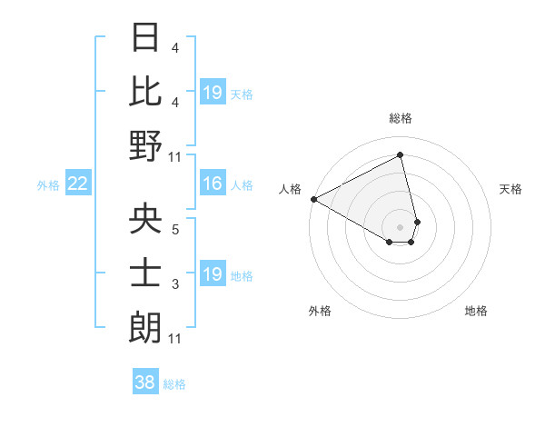 日比野 央士朗さんを姓名の画数から五運を鑑定