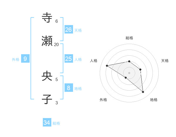 寺瀬 央子さんの総格は34画の2点!