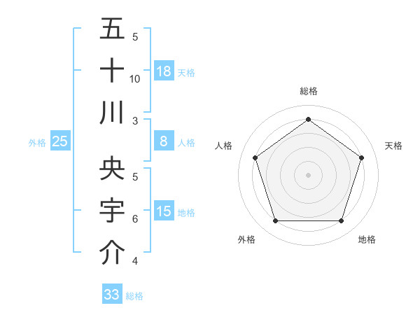 五十川 央宇介さんを姓名の画数から五運を鑑定