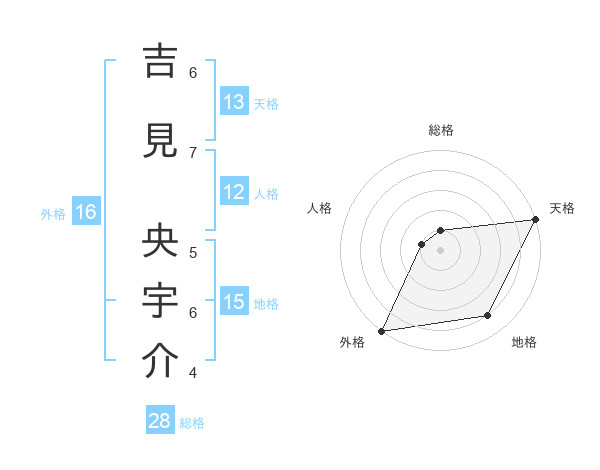 吉見 央宇介さんを姓名の画数から五運を鑑定