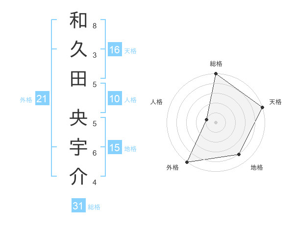 和久田 央宇介さんを姓名の画数から五運を鑑定