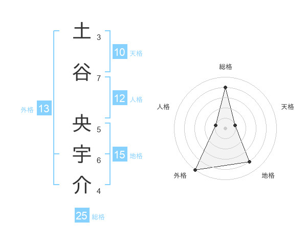 土谷 央宇介さんを姓名の画数から五運を鑑定